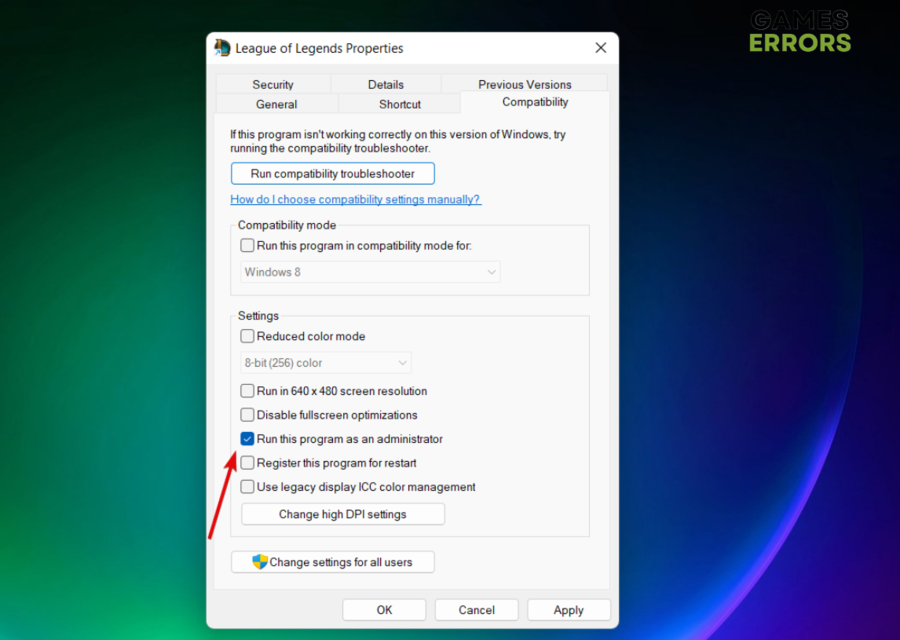 3. Переконайтеся, що ви поставили галочкуЗапустіть цю програму від імені адміністратораваріант.