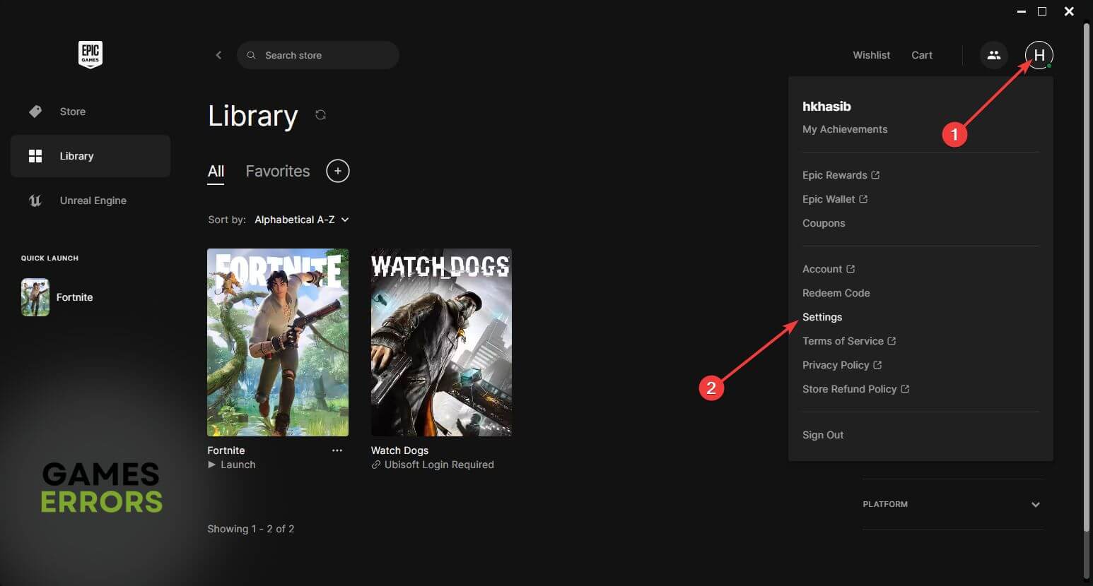 - ВідкрийтеЗапуск Epic Games.