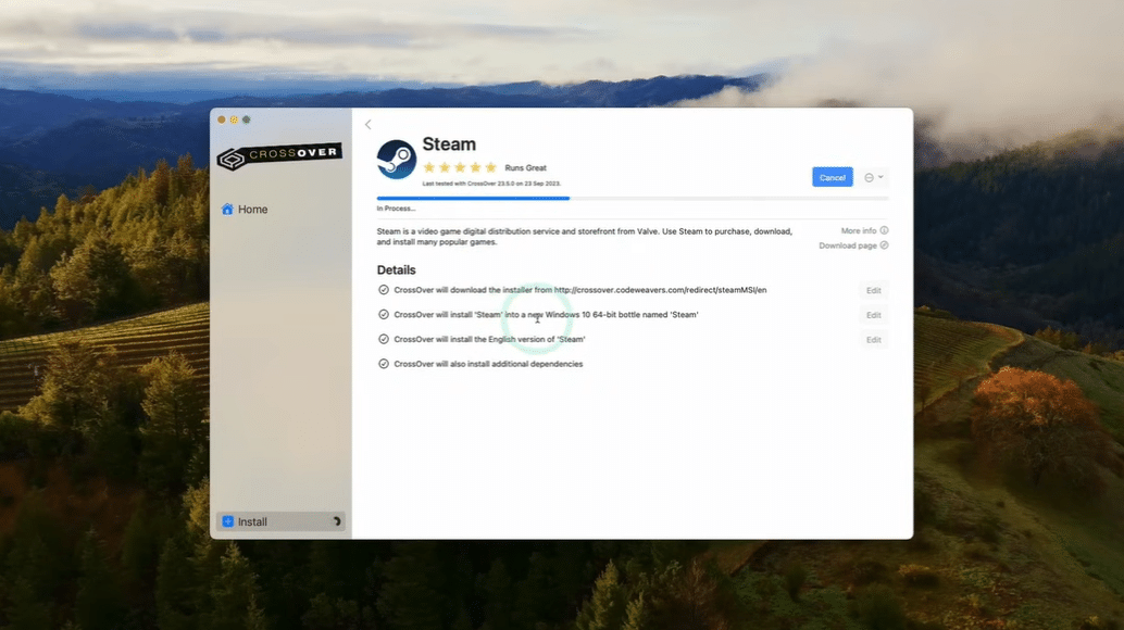 Після встановлення CrossOver підручник проведе користувачів через процес встановлення Steam у середовищі CrossOver. Після цього користувачі можуть без проблем завантажити та встановити Palworld, незважаючи на відсутність рідної версії macOS.