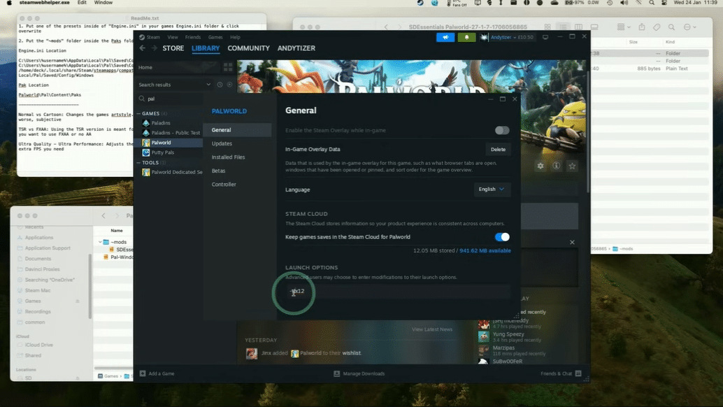 Іншим важливим кроком є додавання папки Mods до папки Packs у каталозі встановлення Palworld. Це передбачає навігацію середовищем CrossOver, пошук папки встановлення Steam і належне розміщення модів.
