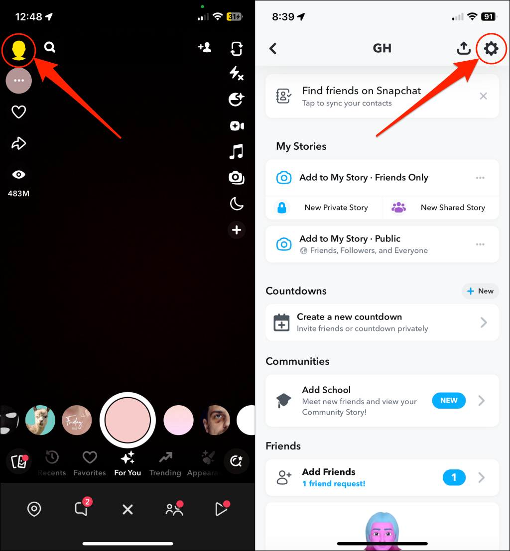- Відкрийте Snapchat і виберіть свійзначок профілю— аватар Bitmoji у верхньому лівому куті.