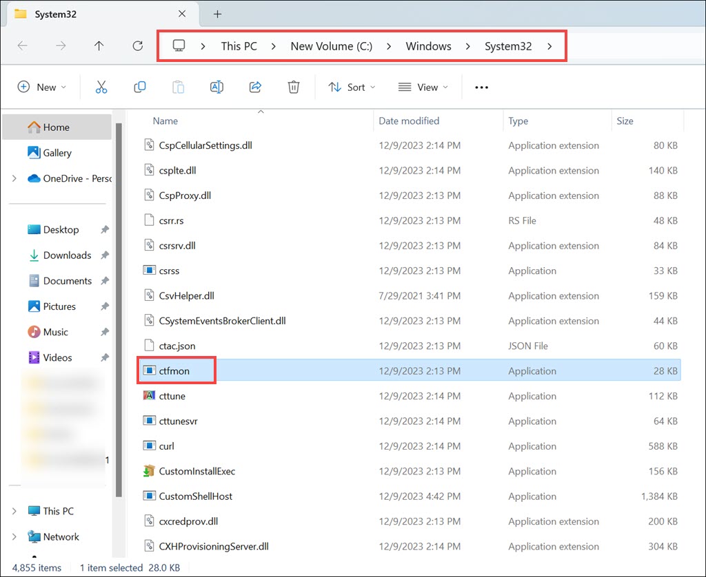 4.Справжній завантажувач CTF повинен знаходитися в системній папці Windows, зазвичай 'C:WindowsSystem32'. Якщо він знаходиться в іншому місці, це може бути червоний прапор.