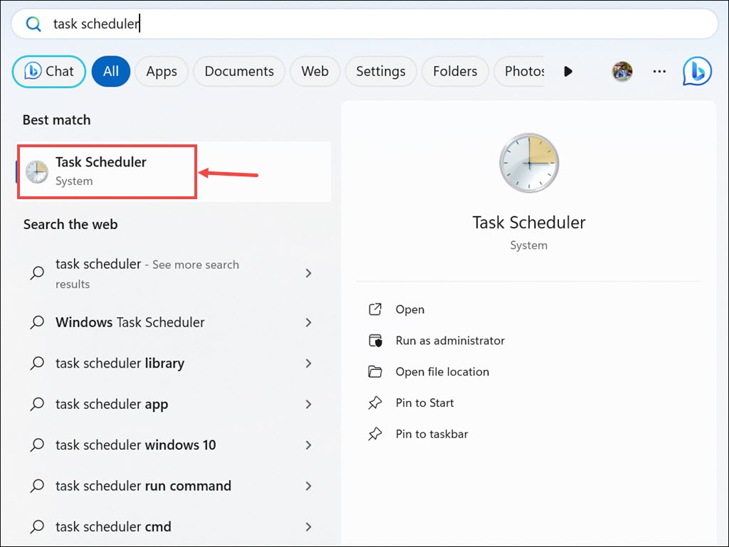 1.ТипПланувальник завданьу рядку пошуку Windows і відкрийте його.